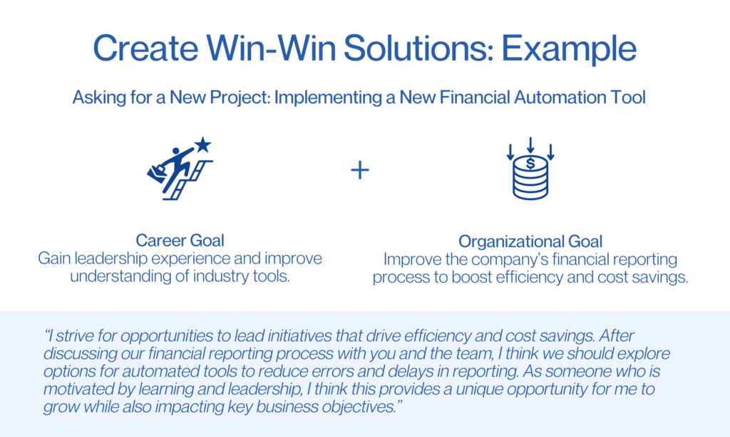 These answers will help you create actionable requests that you can discuss with your manager. Then, you can take your asks to the next level by creating a win-win solution.